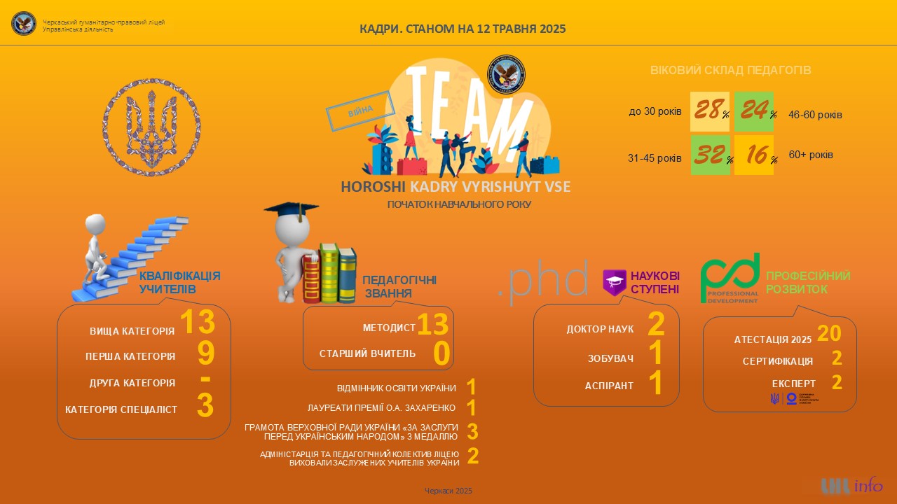 На реалізацію завдань освітнього простору, в ліцеї працює злагоджена педагогічна команда.