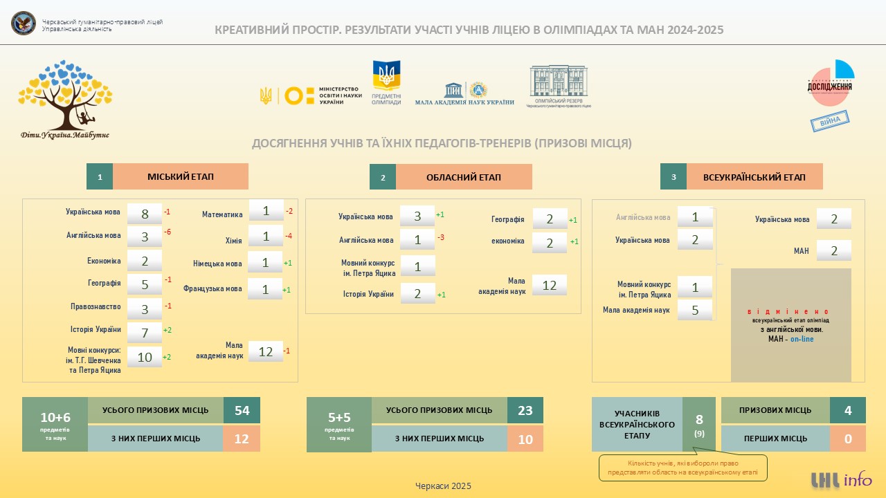 Олімпіади, МАН, навчальні конкурси є рушійними силами розвитку колективу.