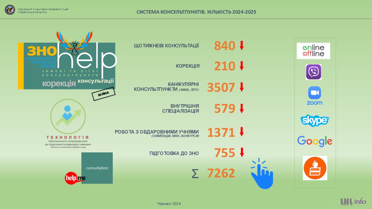 Проєкт «Система консультпунктів» діє як допомога в навчанні учням ліцею, зменшення навантаження,